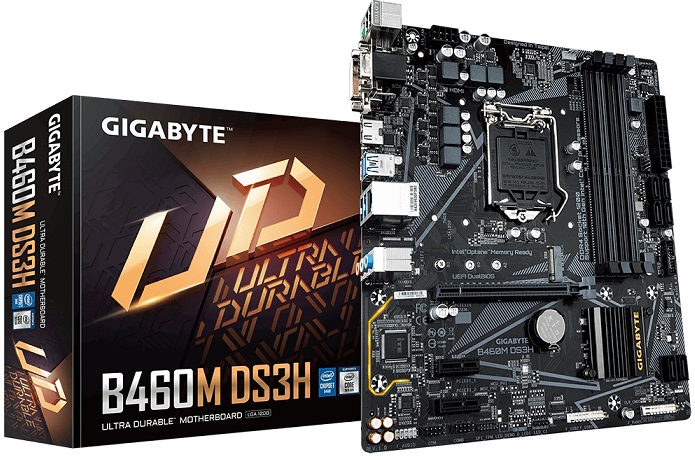 Материнская плата GIGABYTE B460M DS3H имеет 3 слота расширения. Любители интегрированного видео наверняка по достоинству оценят богатство выбора видеоинтерфейсов. Их 3 – HDMI, VGA (D-Sub) и DVI-D. Интегрированный сетевой адаптер обеспечивает скорость до 1000 Мбит/с. Формат звуковой схемы – 7.1. Форм-фактор модели – Micro-ATX. Форма устройства близка к квадрату: высота и ширина платы равны 244 и 225 мм соответственно.