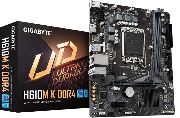 Материнская плата GIGABYTE H610M K DDR4 – надежная основа для построения офисного или домашнего ПК с универсальной производительностью. Она обладает компактными размерами в соответствии с форм-фактором Micro-ATX и поддерживает установку процессора LGA 1700 производства Intel. Для подключения необходимых комплектующих реализованы 2 слота под модули оперативной памяти DDR4, по одному слоту расширения PCI-E x16 и PCI-E x1, 2 разъема SATA и 1 разъем M.2.