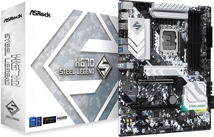 Материнская плата intel H670 ASRock H670 Steel Legend; s1700; ATX; 4xDDR4(3200); 4xSATA III,3xM.2; 2xPCI-Ex16,3xPCI-Ex1; 4xUSB 2.0,3xUSB 3.2,1xTypeC;