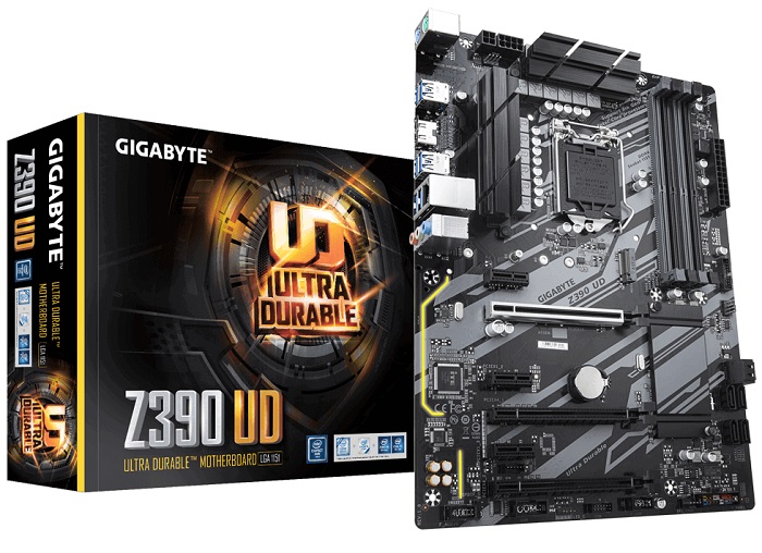 Плата GIGABYTE Z390 UD управляется чипсетом Intel Z390. Модель совместима с процессорами Intel LGA 1151-v2. Форм-фактор – Standard-ATX. В наличии гигабитный сетевой адаптер и звуковой адаптер 7.1.