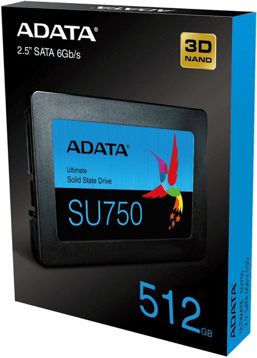512-гигабайтный SSD-накопитель A-Data SU750 [ASU750SS-512GT-C] позволит вам не думать о наличии свободного места на диске. Быстродействие устройства позволяет обеспечить комфортные условия работы с любыми типовыми программами. Интерфейс подключения – SATA III. Установлен контроллер Realtek RTS5733DMQ. Тип памяти – TLC 3D NAND. Накопитель A-Data SU750 [ASU750SS-512GT-C]способен обеспечить скорость чтения до 550 МБ/с. Пиковая скорость записи – 520 МБ/с. Ресурс накопителя составляет 400 TBW. Это хороший показатель для SSD такого объема. Форм-фактор накопителя – 2.5 дюйма. Модель имеет типовые габаритные размеры – 69.85x100.45x7 мм. Черный корпус устройства украшен наклейкой с эффектным логотипом A-Data. Привлекательно выглядит и упаковка накопителя, роль которой исполняет компактная коробка.