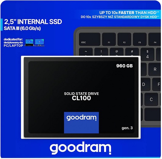 SSD-накопитель Goodram CL100 gen.3 [SSDPR-CL100-960-G3] обладает значительной вместительностью. Устройство подходит для размещения данных, суммарный объем которых может достигать 960 ГБ. Накопитель оптимален для эксплуатации в составе компьютеров, используемых для работы с большим количеством программ.