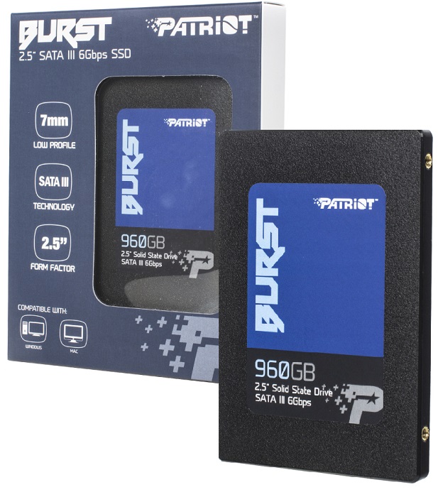 SSD-накопитель Patriot Burst [PBU960GS25SSDR] с объемом в 960 ГБ предназначен для того, чтобы увеличить память и быстродействие вашего компьютера. Устройство имеет физический интерфейс SATA III, контроллер Phison S11 и чип памяти TLC 3D NAND.