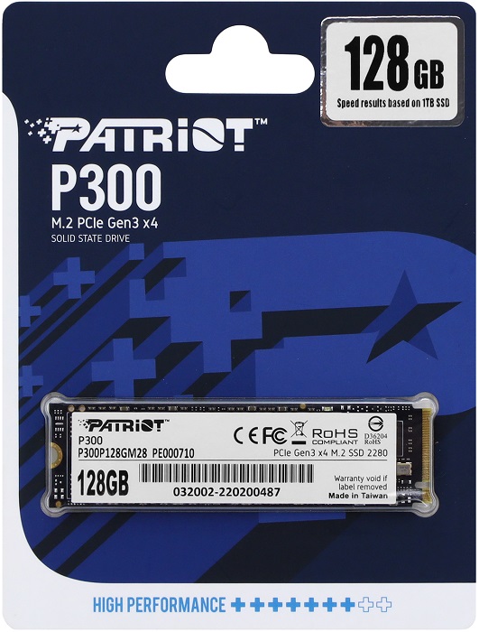 SSD-накопитель M.2 NVMe 128Гб Patriot P300 (P300P128GM28); 1600/600 МБ/сек; 2 млн.ч; Silicon Motion SM2263XT; 3bit TLC 3D NAND