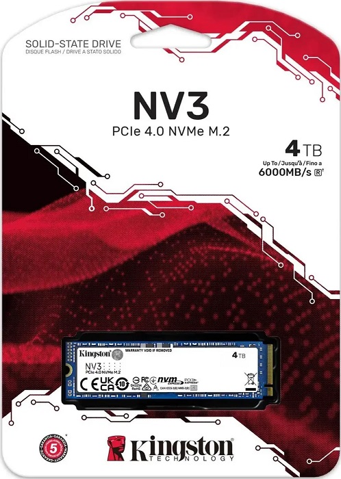 Kingston NV3 PCIe 4.0 NVMe SSD — это инновационное решение для хранения данных, построенное на передовом контроллере NVMe Gen 4x4, обеспечивающем невероятную скорость считывания и записи до 6000/5000 МБ/с соответственно. Накопитель не только увеличивает общую производительность системы, но и снижает потребление энергии, минимизирует нагрев, продлевая срок службы компонентов и оптимизируя эффективность устройства.Компактный форм-фактор M.2 2280 (22x80 мм) с односторонней конструкцией позволяет расширить внутренний объем памяти до 4 терабайт, не занимая лишнего пространства и освобождая место для других комплектующих. Технология NVMe предоставляет совершенно новый уровень скорости и производительности, который заслуживает вашего внимания.
