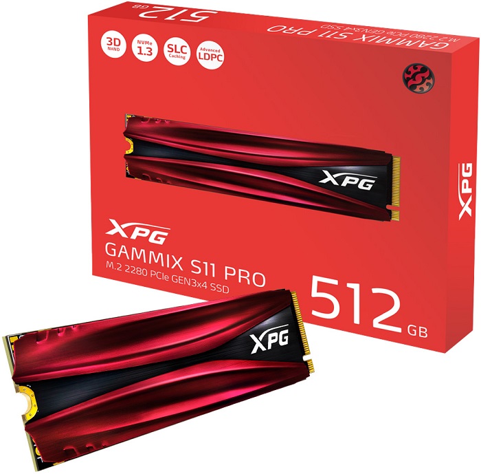 512 ГБ SSD M.2 накопитель A-Data XPG GAMMIX S11 Pro [AGAMMIXS11P-512GT-C] отличается не только своей емкостью, но и скоростью чтения и записи файлов, которая достигает 3350 МБ/с и 2350 МБ/с, благодаря чему запуск приложений, игр, а таке обмен файлами будет происходить молниеносно. Это обусловлено использование памяти типа 3D-NAND, что вкупе с контроллером Silicon Motion SM2262EN и обеспечивает высокое быстродействие. За счет кэширования SLC, встроенного буфера DRAM, а также комплексной защиты данных и поддержки технологии LDPC ECC данная модель отличается высокой стабильностью и надежностью работы как при выполнении компьютером ресурсоемких задач, так и во время разгона системы. SSD M.2 накопитель A-Data XPG GAMMIX S11 Pro выполнен в форм-факторе 2280 и имеет толщину 6.1 мм. Отличительной особенностью модели является наличие встроенного радиатора, что обеспечивает оптимальный температурный режим и предотвращает перегрев и повреждение даже при длительной работе. Для питания и передачи данных модуль использует интерфейс PCI-E 3.0 x4 с ключом М. Энергопотребление модуля не превышает 0.33 Вт.