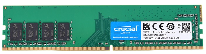 Оперативная память Crucial [CT4G4DFS8266] готова обеспечить достаточное быстродействие офисному компьютеру при работе с не слишком требовательными к ресурсам системы программами. Модель 2019 года поставляется в удобном пластиковом блистере в количестве одной плашки памяти с объемом 4 ГБ. DDR4-память с форм-фактором DIMM функционирует на тактовой частоте 2666 МГц и обладает пропускной способностью PC4-21300. Оперативная память Crucial [CT4G4DFS8266] поддерживает режимы работы 1600 МГц, 1866 МГц, 2133 МГц, 2400 МГц и 2666 МГц. Высота модуля памяти равняется 31.25 мм. Напряжение питания - 1.2 В.