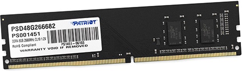 Тактовая частота памяти Patriot Signature Line [PSD48G266682] равна 2666 МГц. Пропускная способность составляет 21300 МБ/с. Устройство способно использовать и другие частоты. Минимальная рабочая частота – 1600 МГц. Тайминги памяти – 19-19-19-43.