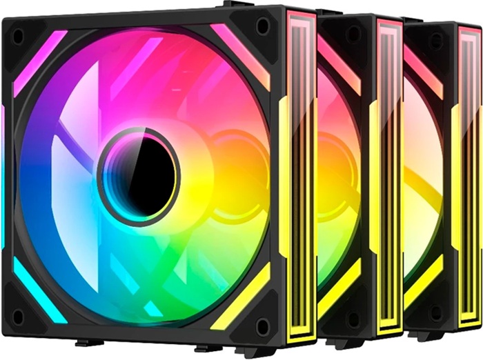 Вентилятор 120мм (набор 3 шт.) Xastra FS120B ARGB Black (FS120-3BA-SXX-GL); гидродинамический; 800-2000 об/мин; 29.6 дБ; 4 pin; ARGB-подсветка