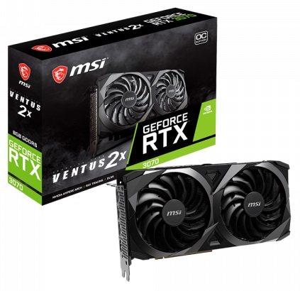 Серия Ventus ориентирована на скорость, поэтому в конструкции этих видеокарт нет ничего лишнего. За их охлаждение отвечает кулер с тремя вентиляторами, а строгий дизайн гармонично впишется в любую компьютерную сборку.