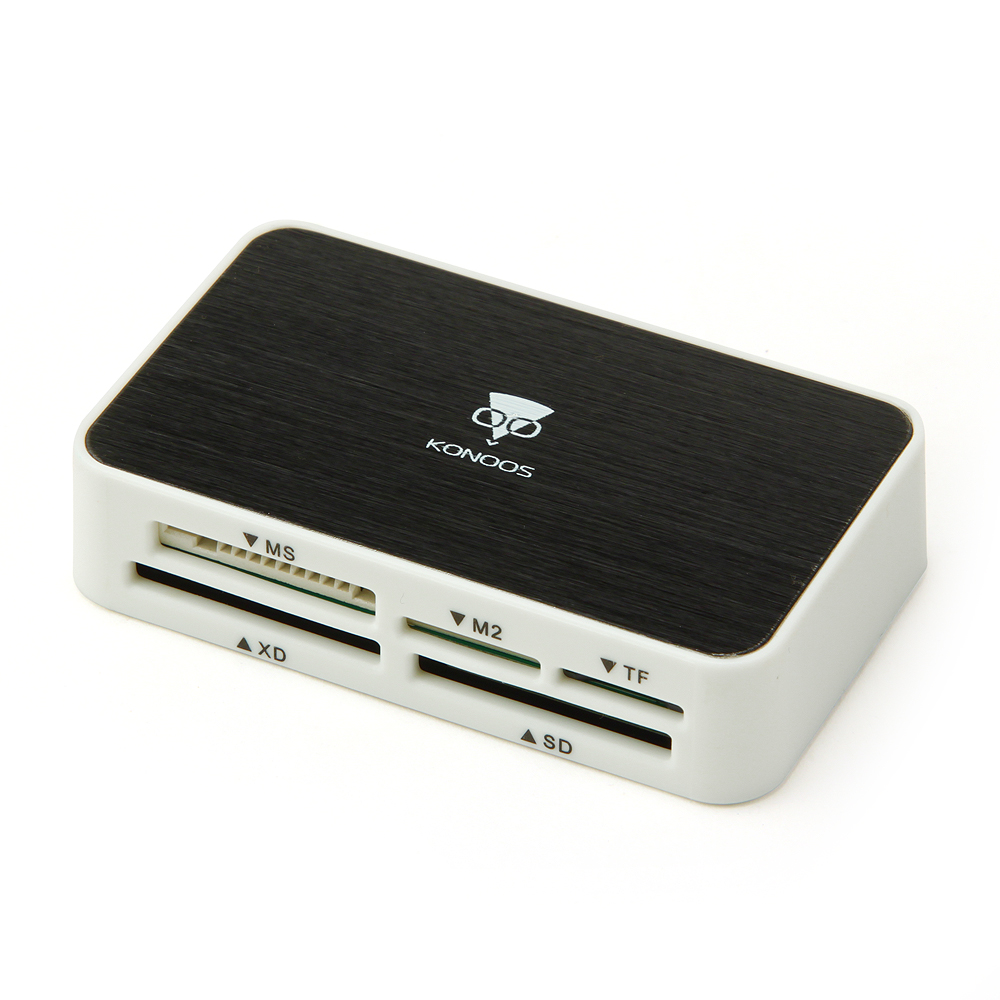 Карт-ридер USB 3.0 KONOOS UK-30; microSD,SD,M2,MS,MMC,TF,XD; черный/белый