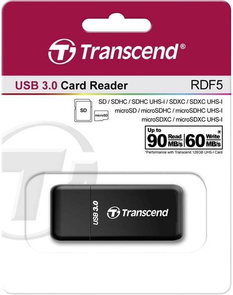 Карт-ридер Transcend TS-RDF5K – это универсальное устройство, необходимое для записи данных на флеш-накопители. Поддерживаемые форматы карт памяти: SD, microSD, microSDHC, microSDXC Ultra High Speed и другие. Считыватель черного цвета имеет классический дизайн. Габаритные размеры изделия составляют 56х24х8.9 мм. Небольшой вес устройства равен 0.018 кг.