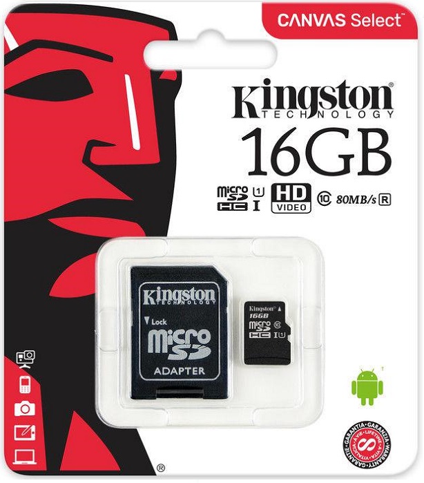 Карта памяти microSDHC 16 ГБ Kingston Canvas Select