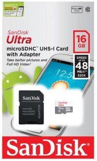 Карта памяти microSDHC 16 ГБ SanDisk Ultra (SDSQUNB-016G-GN3MA); Class10,UHS-I; 48 Мб/с; адаптер на SD