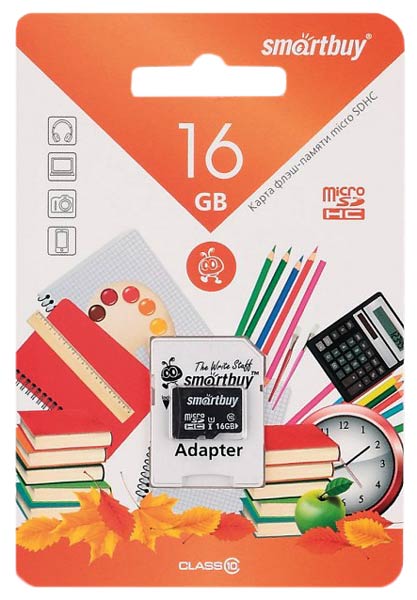 Карта памяти microSDHC 16 ГБ SmartBuy (SB16GBSDCL10-01-BTC); Class10; 10 Мб/с; адаптер на SD