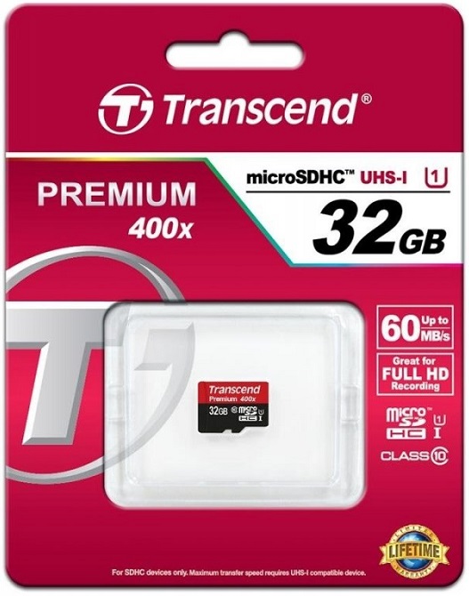 Карта памяти microSDHC 32 ГБ Transcend Premium 400x (TS32GUSDCU1); Class10,UHS-I U1; 60/45 Мб/с; без адаптера