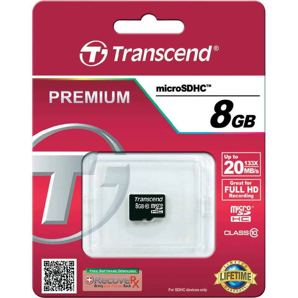 Карта памяти microSDHC 8 ГБ Transcend Premium (TS8GUSDC10); Class10; 20/17 Мб/с; без адаптера