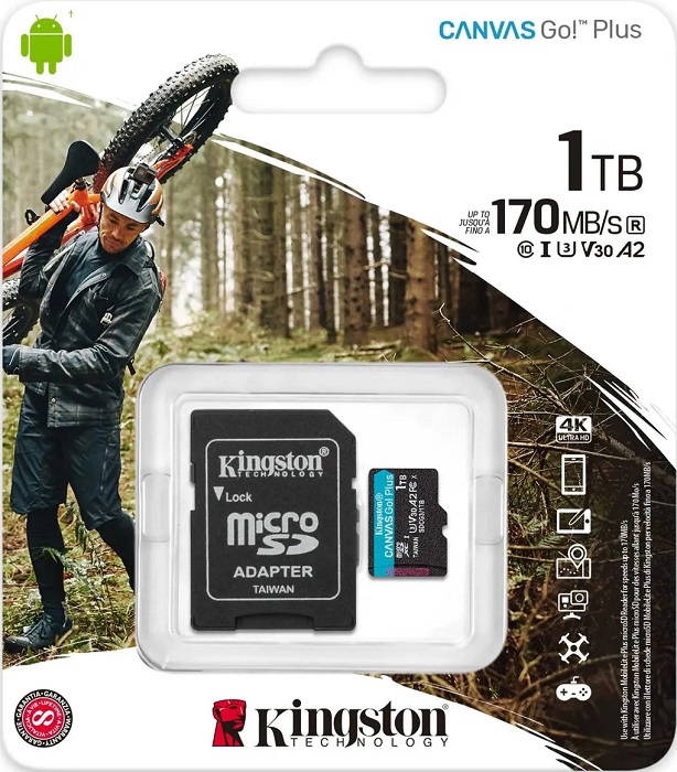 Canvas Go! Plus microSD от Kingston — это карта памяти для тех, кто всегда в движении, постоянно ловит моменты и живет в поиске новых приключений. Благодаря высокой скорости передачи данных до 170 МБ/с, она ускоряет рабочие процессы и освобождает больше времени для творчества.Карта памяти соответствует стандартам U3 и V30, что позволяет записывать видео в разрешении 4K Ultra HD без снижения скорости и потери кадров. Идеальна для серийной фотосъемки, где важна каждая секунда. Поддержка класса производительности приложений A2 улучшает работу приложений на смартфонах и планшетах, повышая общую эффективность.Для удобства использования с различными устройствами прилагается адаптер SD, позволяющий подключить карту к устройствам, поддерживающим SD-карты. Таким образом, Canvas Go! Plus microSD станет вашим верным спутником в путешествиях, вдохновляющим на новые творческие свершения.
