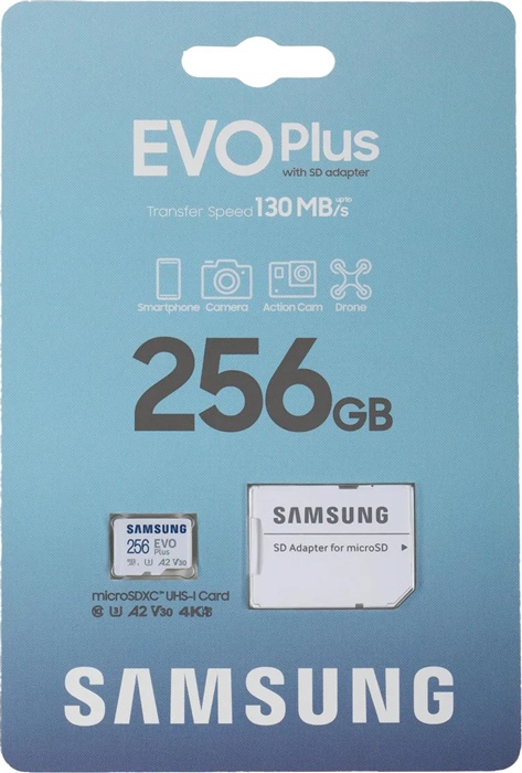 Карта памяти Samsung EVO Plus обладает оптимальным объемом 256 ГБ, который достаточен для решения подавляющего большинства задач как в повседневном использовании, так и в профессиональной эксплуатации. Адаптер в комплекте поставки позволит задействовать накопитель данных с ноутбуком или ПК. Допускается эксплуатация карты памяти в обширном диапазоне рабочих температур: от -25 до +85 градусов.