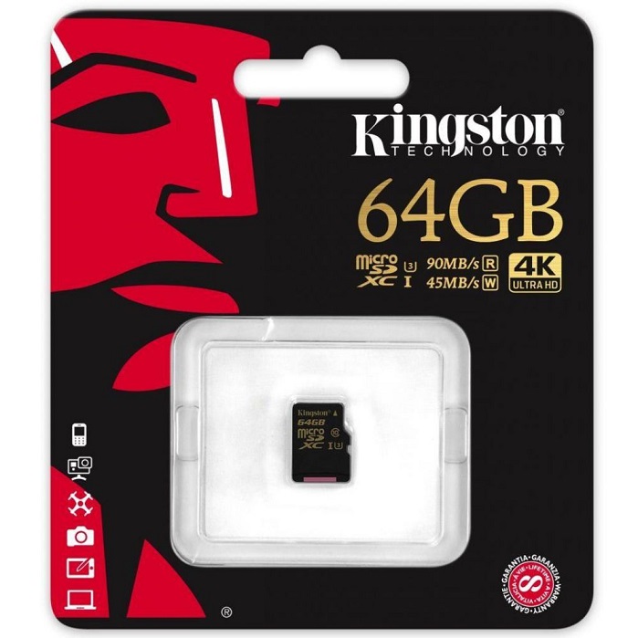 Карта памяти microSDXC 64 ГБ Kingston Gold Series (SDCG/64GBSP); 133х; 90/45 Мб/с; без адаптера
