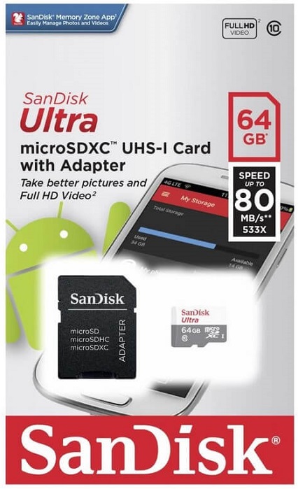 Карта памяти microSDXC 64 ГБ SanDisk Ultra