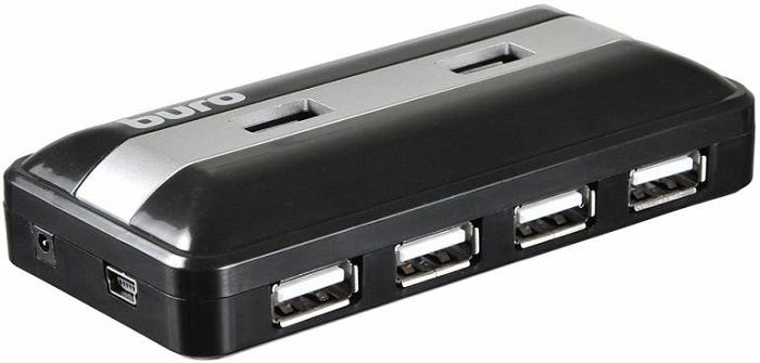 USB-разветвитель Buro BU-HUB7-U2.0 может похвастаться внушительным количеством USB-портов в своей конструкции. Занимая всего лишь один интерфейс USB компьютера при подключении, эта модель предлагает взамен семь портов USB 2.0. Они позволят подключить к ноутбуку или ПК любые накопители данных, мышь или другую периферию. Стабильная работа подключенной техники обеспечена оптимальной скоростью передачи данных, достигающей 480 Мбит/сек. При подключении USB-разветвителя Buro BU-HUB7-U2.0 к компьютеру он безошибочно распознает его как хаб, не требуя установки дополнительного программного обеспечения. 50-сантиметровый кабель в комплекте отсоединяется от компактного корпуса устройства.