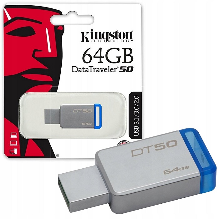 USB-флэш 64 ГБ Kingston DataTraveler 50 (DT50/64GB); USB 3.0; серебристый/синий
