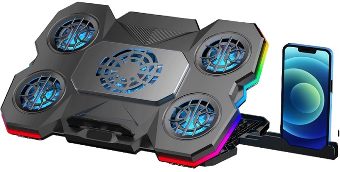 Система охлаждения для ноутбука Jet.A PANTEON CP-175 RGB Black; до 17''; 1x100 мм, 4x70 мм; 2xUSB 2.0, RGB подсветка, держатель для смартфона, регулер