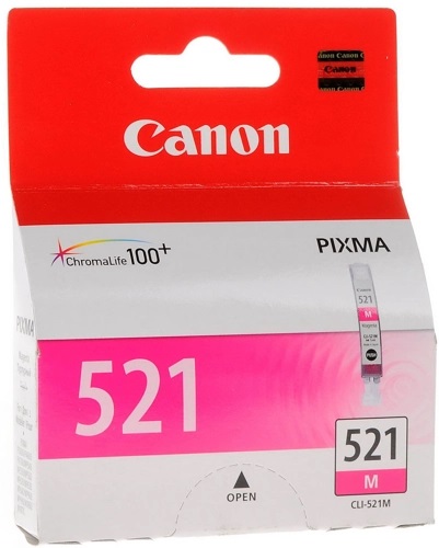 Струйный картридж Canon CLI-521M предназначен для струйных принтеров, которые сегодня отдают предпочтение очень многие пользователи. Причина этого в широком функционале и экономичности таких устройств за счет системы раздельных картриджей. Они позволяют рационально подходить к смене картриджей, израсходовавших чернила: Вам не придётся заменять мульти-картридж из-за одного цвета. Здесь достаточно заменить лишь один цветовой расходник.