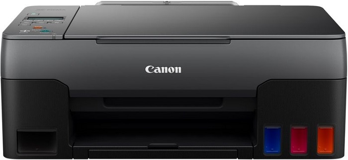 Многофункциональное устройство Canon PIXMA G2420 рассчитано на подключение к компьютерам, работающим под управлением ОС семейства Windows. В комплекте – диск с программным обеспечением, кабель питания, руководство пользователя и стартовый комплект чернил. Цвет корпуса многофункционального устройства – черный.
