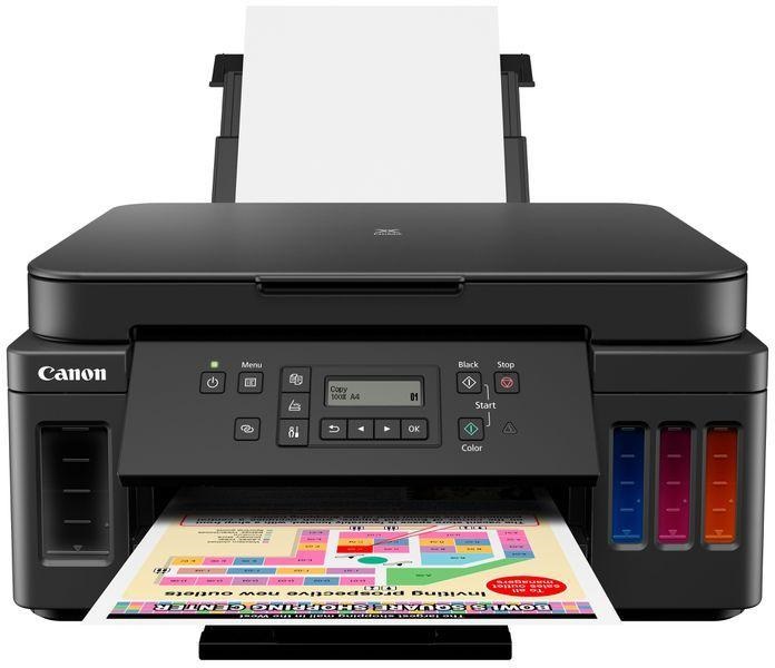 Canon Pixma G6040 - принтер с широким рядом функций и пополняемыми емкостями для чернил увеличенного ресурса, обеспечивающий высокое качество печати страниц. Выполняйте печать, сканирование, копирование и подключение к облачным ресурсам через приложение Canon PRINT. Пополняемые емкости для чернил с удобными бутылочками, малое время простоя благодаря емкости лотков для бумаги в 350 листов и ресурс печати до 18 000 страниц на 3 бутылочках с черными чернилами или 7700 страниц на комплекте цветных чернил обеспечат высококачественную печать. Многофункциональная откидная передняя панель с 2-строчным ЖК-экраном обеспечивает компактность и практичность, что делает устройство идеальным решением для тех, кто начинает заниматься бизнесом дома или в небольшом офисе.