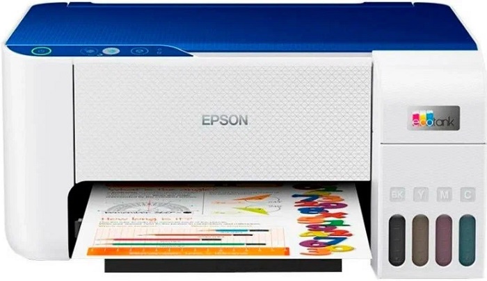 Epson L3215 обладает простым USB-подключением и поддержкой мобильных технологий печати. Данные об этапах работы отображаются на монохромном сенсорном дисплее. Емкость подачи вмещает 100 листов, а выходной лоток – 30 листов. МФУ требует наличия 4 картриджей, поддерживает установку СНПЧ.