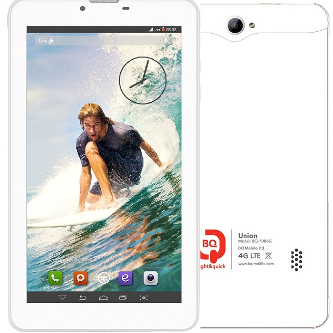 Планшет 7" BQ Union (BQ-7006G); 1024x600; MediaTek MT8735(4x1,0 ГГц); 1Гб/8Гб; 2Мп/0.3Мп; 3G/4G(LTE); GPS; Android5.1; белый