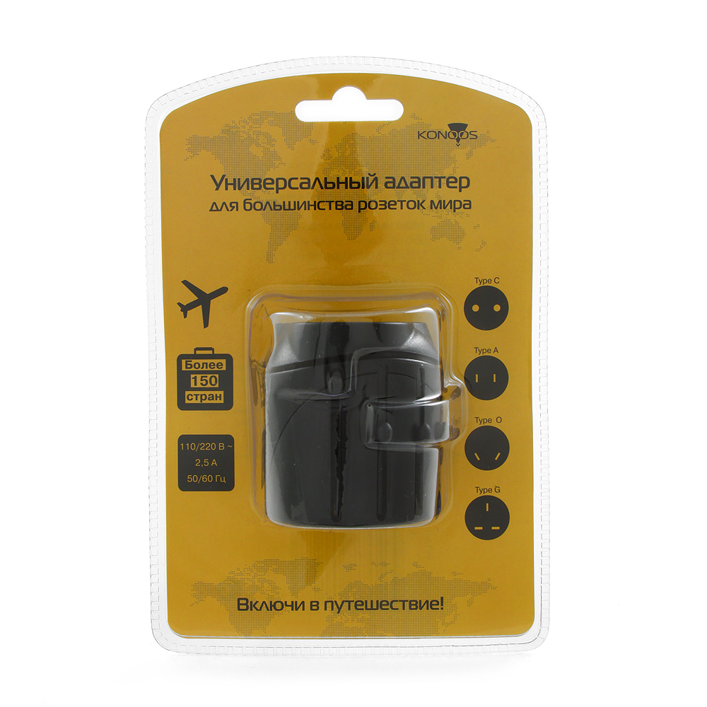 Переходник питания KONOOS (WTA-1); EU,US,UK,RU; чёрный