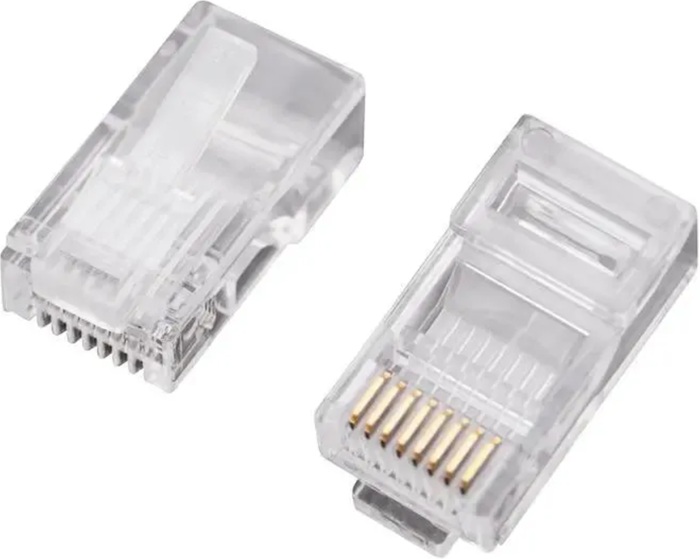 Штекер RJ-45 (8P8C) Rexant 05-1021 категории 5 предназначен для оконечивания компьютерных и телефонных кабелей с целью подключения к сетевым устройствам. Корпус выполнен из прозрачного пластика, контакты имеют золотое напыление. Разъём не имеет вставки, разделка кабеля осуществляется непосредственно в корпусе с последующей обжимкой.