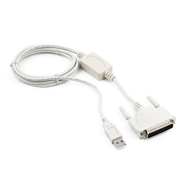Разъёмы на кабеле – USB AM [папа] (для USB-порта компьютера), 25-контактный DB25M [папа] (для подключаемого устройства)