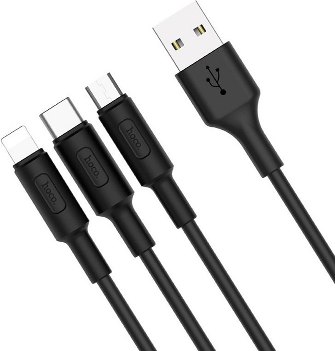 Кабель AM/Type-C,Lightning,microBM 5p hoco X25 (6957531080169); 1 м; чёрный