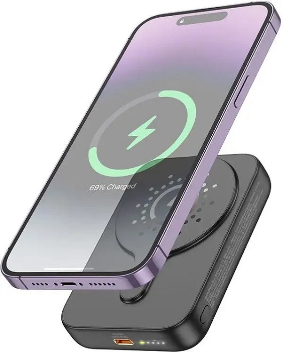 Портативный аккумулятор 10 000 мАч hoco J117A Esteem (69422007605823); 3A; TypeC/Qi; черный