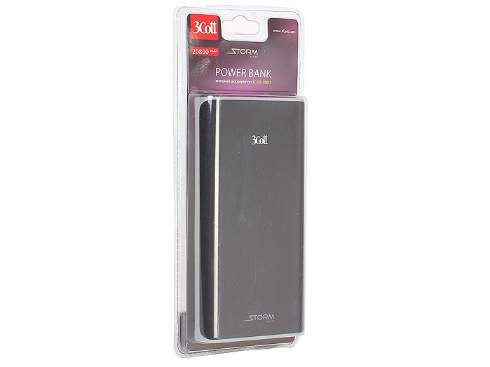 Портативный аккумулятор 20 800 мАч 3Cott Storm (3C-PB-208SS); 1А/2.1А; 2xUSB, micro USB; фонарик; черный/серый