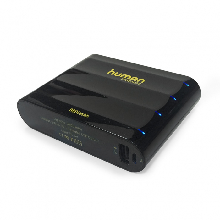 Портативный аккумулятор 8 800 мАч Human Friends Flagman; 1А/2.1А; 2xUSB/microUSB; фонарик; черный