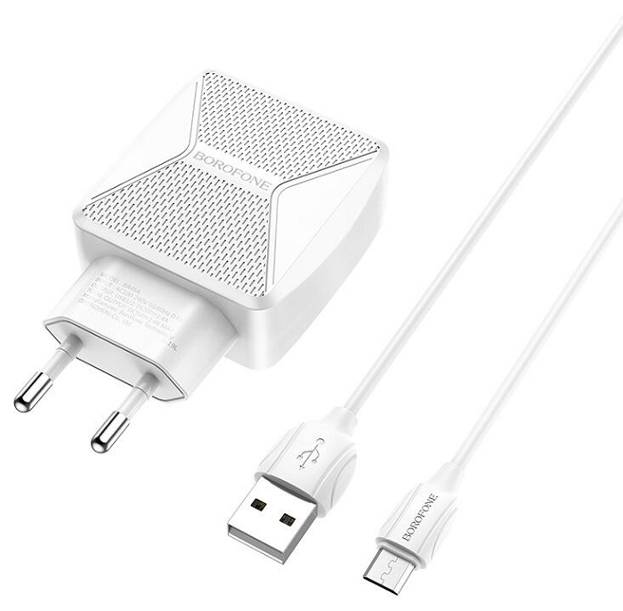 Зарядное устройство USB сетевое Borofone BA45A Max Power (26377); 2.4А; 2хUSB+кабель microUSB; белый