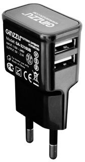 Зарядное устройство USB сетевое Ginzzu GA-3210UB; 2.1А; 2хUSB; чёрный