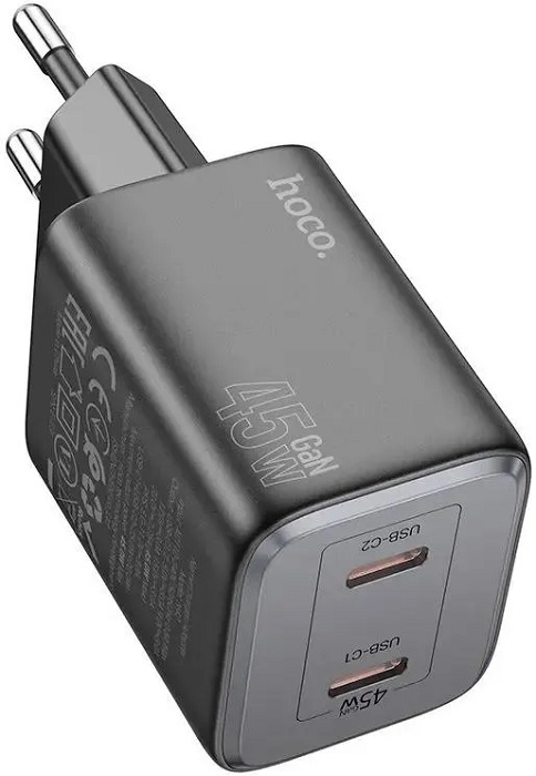 Зарядное устройство USB сетевое hoco N42 Elogiado (6942007617086); 3А; 2xTypeC; чёрный