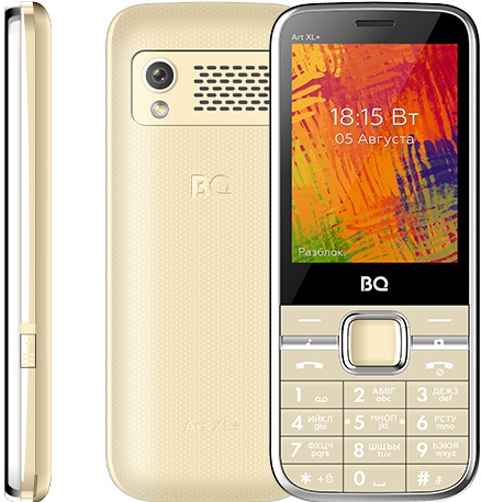 Мобильный телефон BQ ART XL+ Gold (BQ-2838); 2.8”(320x240); 32Мб/32Мб; камера; 2SIM; 1400мАч; золотистый