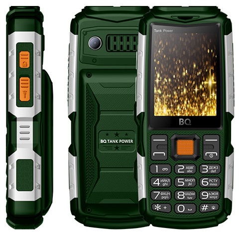 Мобильный телефон BQ TankPower Green Silver (BQ-2430); 2.4”(320x240); 32Мб/32Мб; камера; 2SIM; 4000мАч; зеленый/серебристый